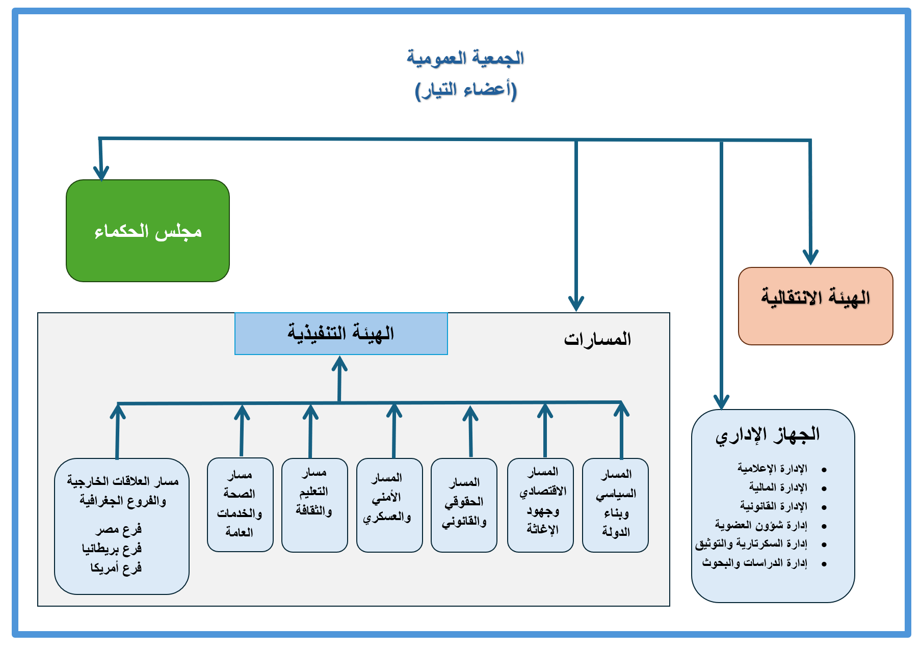 - 6. إعطاء شباب التيار مساحة أكبر للمشاركة: في المرحلة الانتقالية، والحرص على وجود تمثيل مناسب لهم في مختلف اللجان المشكلة، إيماناً بأنهم قادة التيار مستقبلاً.